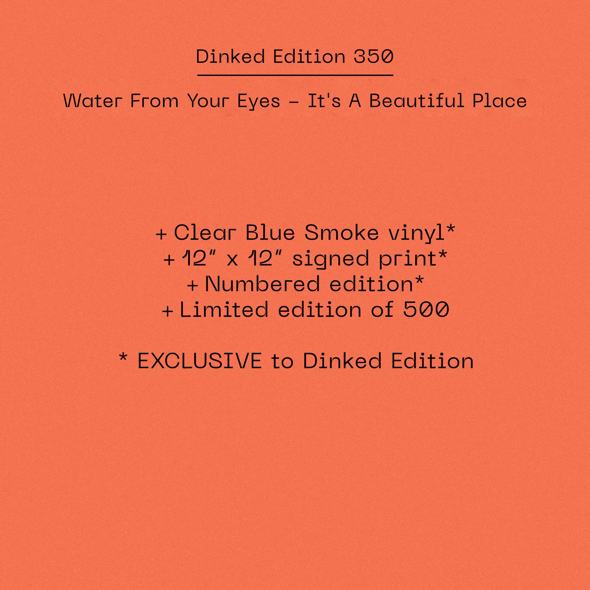 It’s A Beautiful Place opens with zero-gravity instrumental ‘One Small Step’ – a fitting prelude for what is one giant leap for New York duo Water From Your Eyes. The album is a gleaming megalopolis, a satellite view of eras and musical forms, a reframing of the y2k songbook that is at once awe-struck and mindful of its place in the vastness. “It ended up being about time, dinosaurs and space,” says Nate Amos. “We wanted to present a wide range of styles in a way that acknowledges everything’s just a tiny blip.”