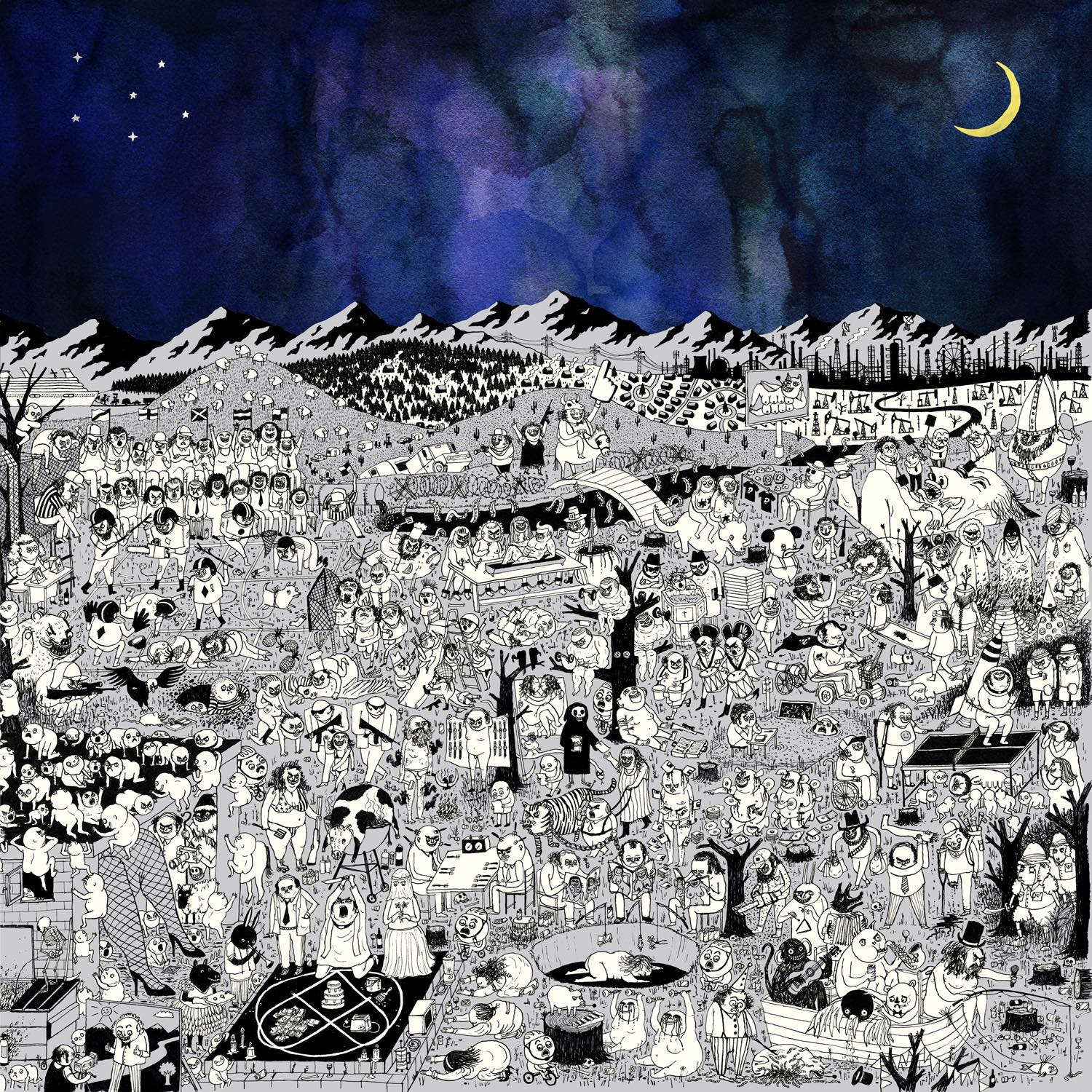 Pure Comedy is Father John Misty’s third album—a complex, sardonic yet tender meditation on the follies of modern life from singer-songwriter Josh Tillman. Steeped in the tradition of American songwriting greats, it balances wit, grandeur, and vulnerability. Recorded at Hollywood’s United Studios, it was co-produced by Father John Misty and Jonathan Wilson, engineered by Trevor Spencer, with orchestral arrangements by composer Gavin Bryars. Tracklist: 1. Pure Comedy 2. Total Entertainment Forever 3. Things It Would Have Been Helpful to Know Before the Revolution 4. Ballad of the Dying Man 5. Birdie 6. Leaving LA 7. A Bigger Paper Bag 8. When the God of Love Returns There'll Be Hell to Pay 9. Smoochie 10. Two Wildly Different Perspectives 11. The Memo 12. So I'm Growing Old on Magic Mountain 13. In Twenty Years or So
